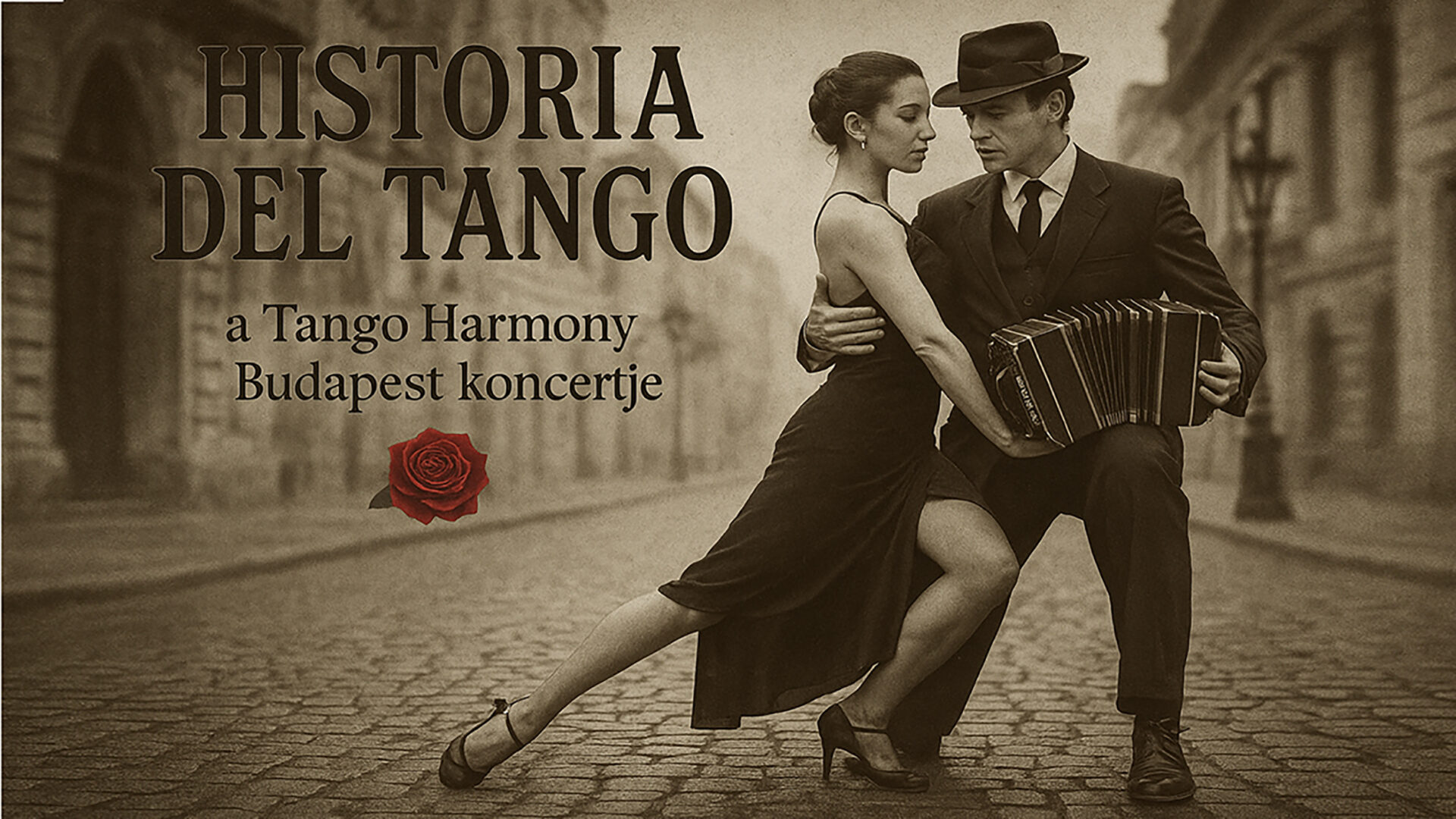 A Tango Harmony Budapest argentintangó zenekar különleges koncertjén zene és tánc egyaránt életre kel. A műsor végigvezeti a közönséget a tangó fejlődésének legfontosabb állomásain – a korai milongák világától Astor Piazzolla és Lázár György újító hangzásáig.